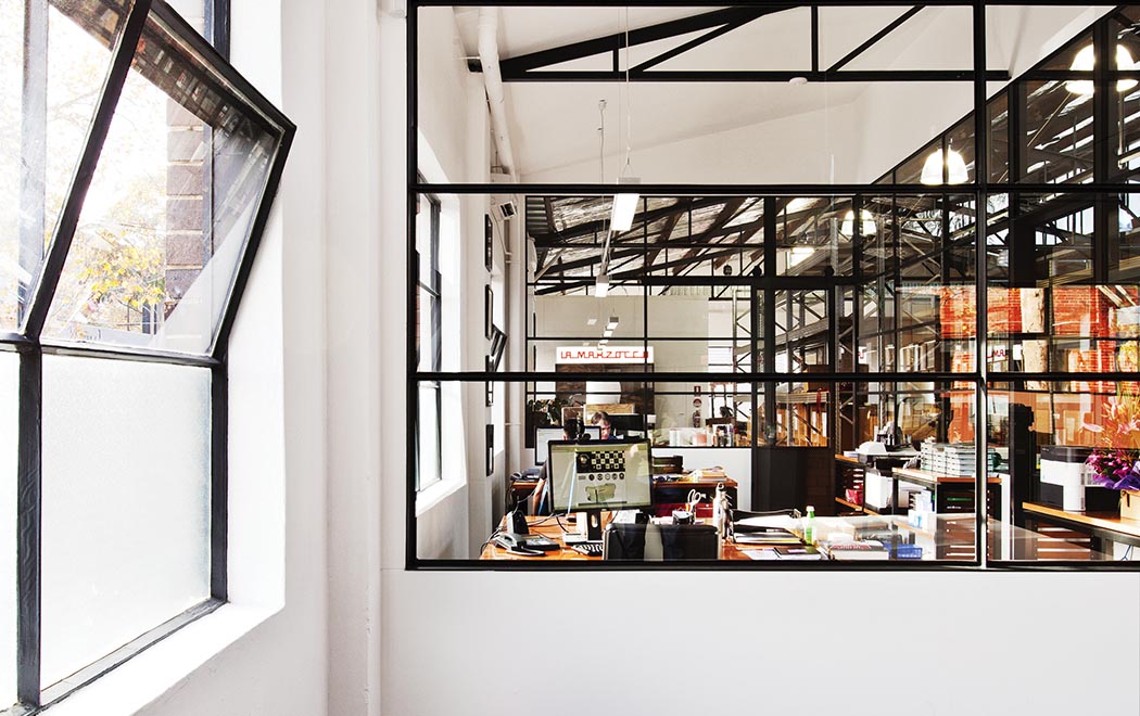 On a wholly different, zoomed-in scale, projects such as the Melbourne headquarters for La Marzocco Espresso Machines and Allpress Roastery and Café demonstrate a highly nuanced and refined use of steel as a detailing material. From door handles and track sliding doors to balustrades and window frames, Moore’s work on these Melbourne projects highlights the capacities of steel as a bespoke design element.
