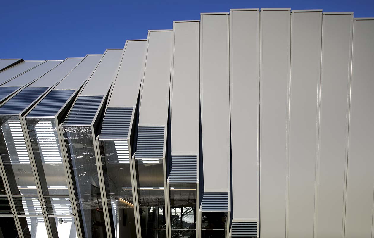 The BENCHMARK Evolution wall panels made from COLORBOND® Ultra steel in the colour Woodland Grey® lent themselves well to the project and achieving the desired staggered- panel effect. FJMT had employed such vertical patterning for internal applications in the past, but this project was for it the first instance of its application as an external facade.
