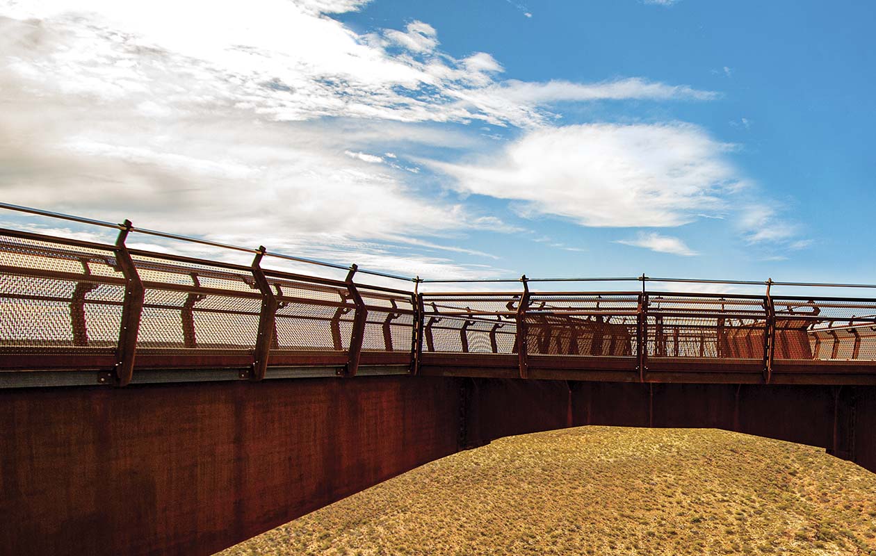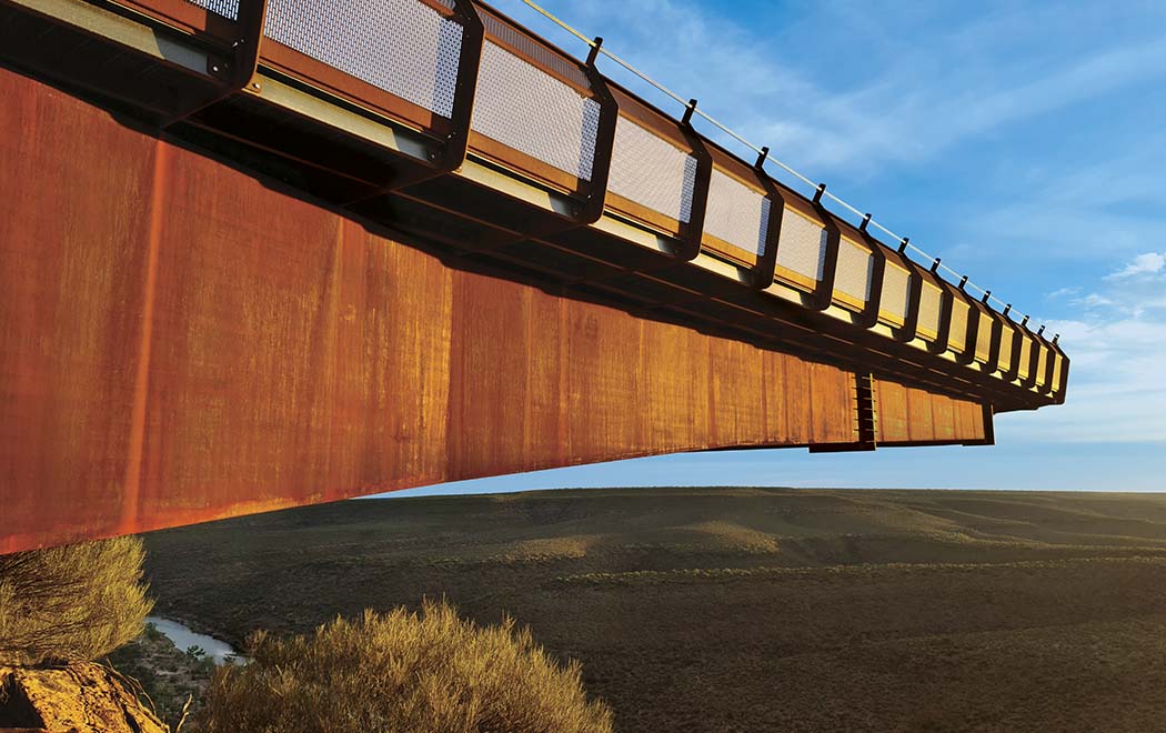 Visitors to Western Australia’s Murchison River Gorge are able to connect with the landscape like never before, thanks to two cantilevered walkways fabricated from REDCOR® weathering steel.