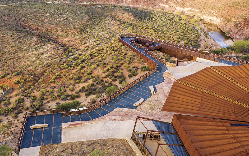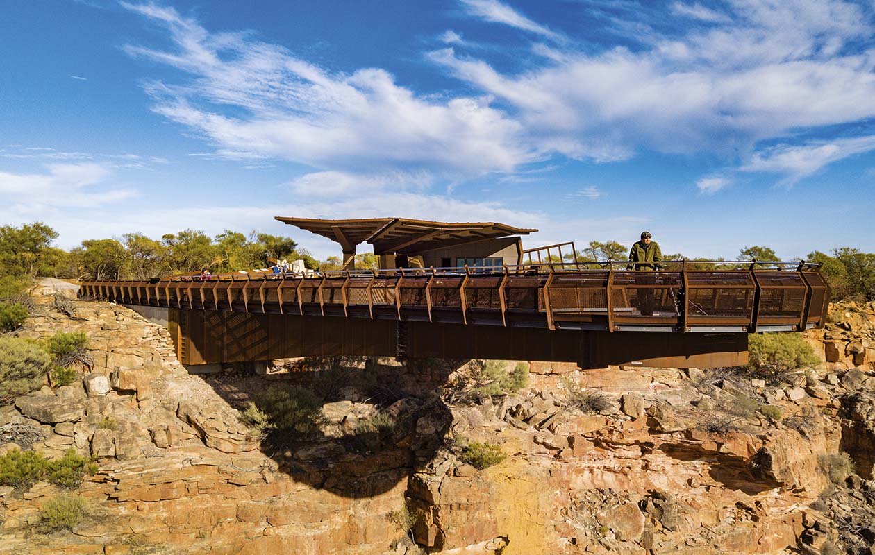 This new tourist attraction in Western Australia’s mid-west combines equal parts function and sculpture, and offers new vantage points from which to admire the sandstone river valley below.