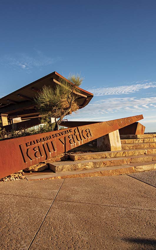 About 600 kilometres north of Perth, the national park sits within Nanda country, and input from the local indigenous salt-water people played an important part in the design and delivery of this project. A new sign at the entrance proclaims the Nanda words for ‘sky’ and ‘to walk’: kaju yatka.
