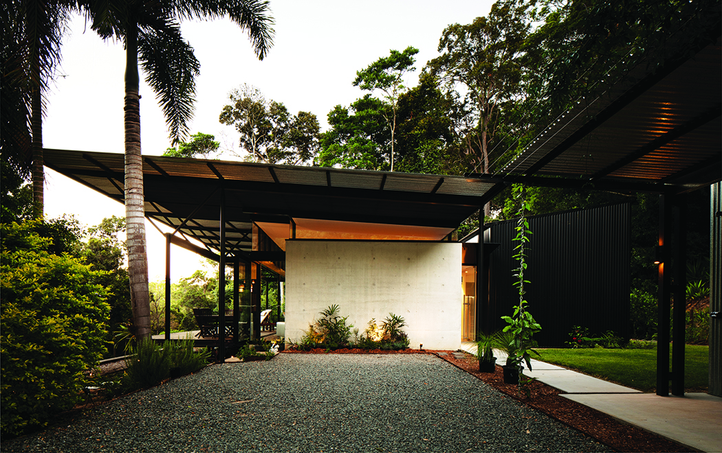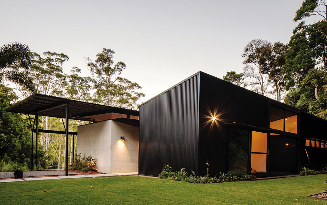 With its light, flysheet-like roof that seemingly wants to float away, this house for the subtropics harnesses and celebrates a deep connection to place with its elegant archetypal forms. Wall cladding made from COLORBOND® steel in the colour Night Sky® and galvanised steel roofing make up key parts of its overall daring, yet sparing, forms.