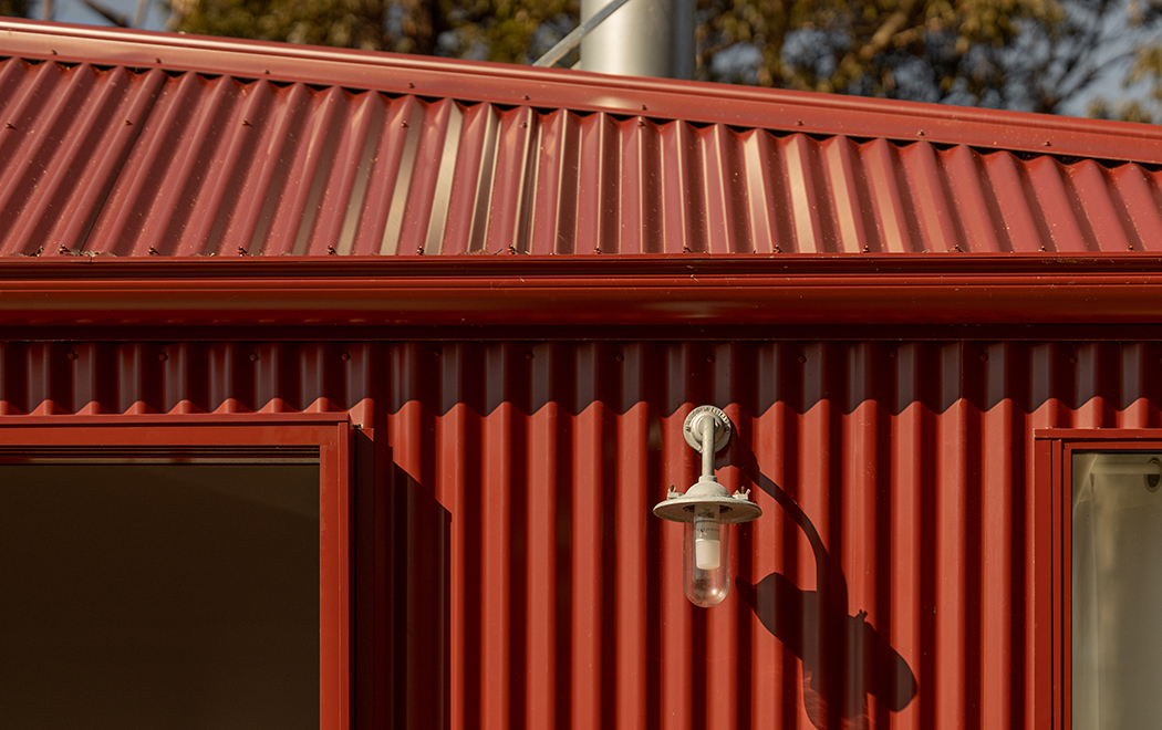 For the roof and wall cladding, Chan opted for COLORBOND® steel in the colour Manor Red® in CUSTOM ORB ACCENT® 21 profile, a slight variation on the traditional corrugated profile, with a rib height of 21 millimetres and material thickness of 0.48 millimetres. The daring use of the exterior cladding added visual complexity to the otherwise simple design. As well, the exterior walls and roof won’t require painting, keeping costs low well into the future, thanks to the durability credentials of COLORBOND® steel.