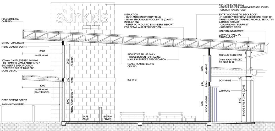 AFS founder and CEO Jake Gundry estimated that switching to prefabricated LGS framing for the walling and roof trusses saved 90 days in the build program. “The originally conceived concrete bunker was transformed into a building made from lightweight framing crowned with a spectacular circular roof,” he says. The elimination of ‘wet trades’ – such as the concreters who would have been originally required – helped reduce the delivery timeline, while the fast installation of the roof frames also accelerated the pace of the internal fit-out.