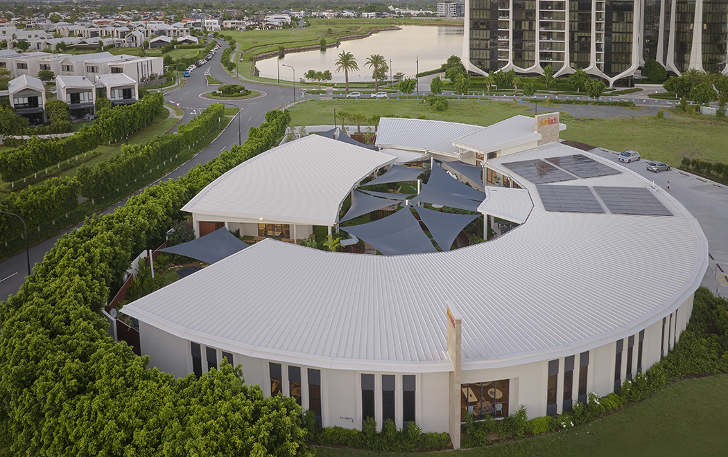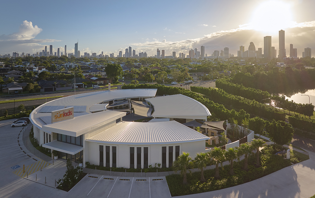 On the Gold Coast, Sunkids Mermaid Waters is redefining what a childcare centre can be, with a striking roof form made from COLORBOND® Ultra steel that creates a distinct sense of embrace.