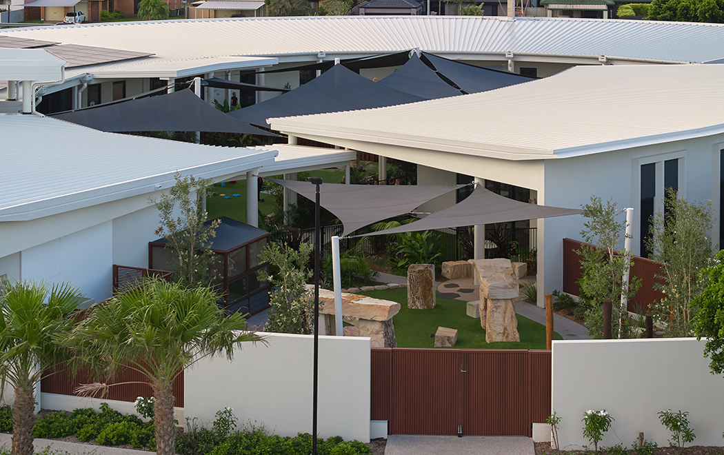 With a nearly 2,000-square-metre footprint, the expansive roof of Sunkids Mermaid Waters was thoughtfully considered from concept through to completion. Positioned at the heart of a residential neighbourhood, the roof was designed not only to contribute meaningfully to the urban landscape for decades to come, but also to withstand the challenges of its coastal setting.