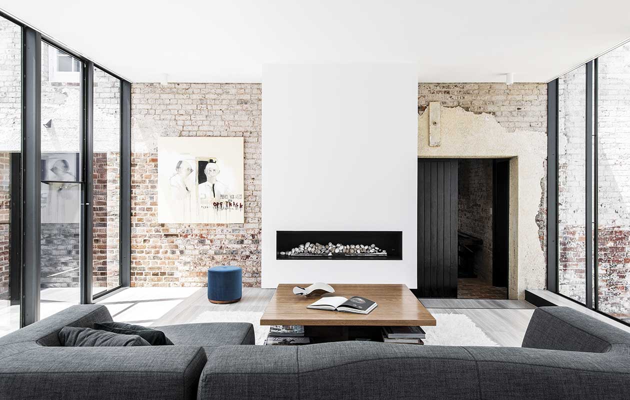 Inside, the history of the building is celebrated by the exposed brick walls and joists. But what really ignites the character and history of the building are the new interventions – the imaginative use of steel in two lightweight, glazed ‘tubes’ which appear as a singular connection that brings all the elements of the house together.