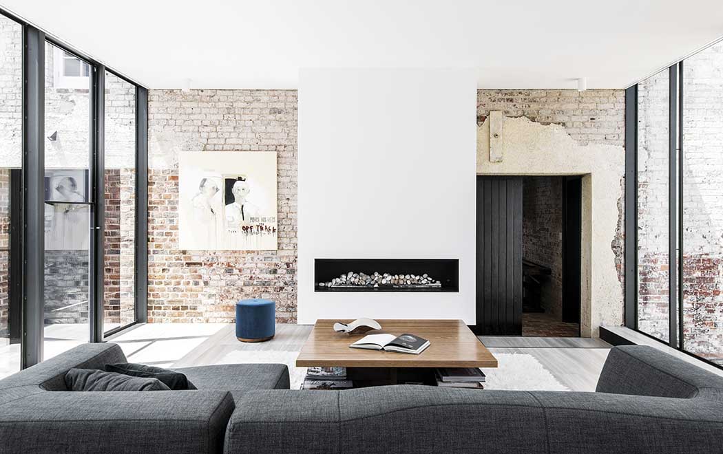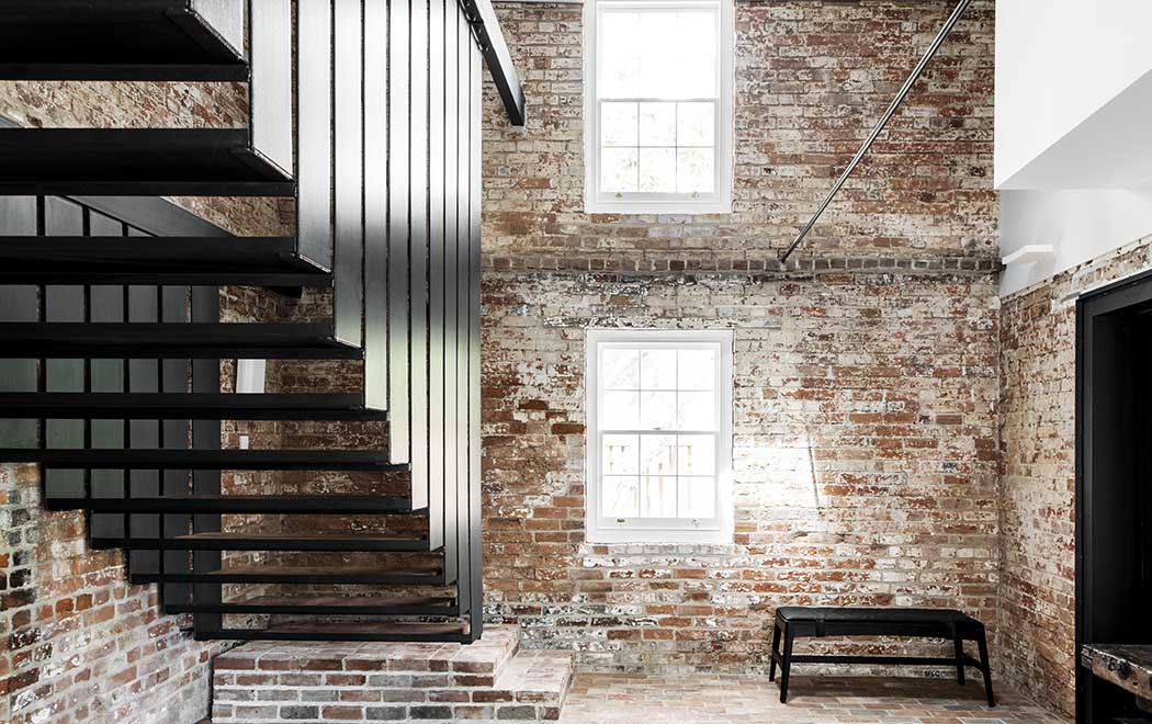 From the facade, the transition between new and old is made explicit with the juxtaposition of steel and brick. This differentiation, set up as the home is first visible, is carried through to the interiors, with steel used again and again to identify any modern additions.