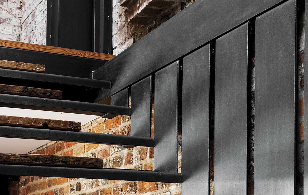 This formed an integral part of the architectural narrative: the coming together of old and new, where the “old” was identified by original materials with aged patinas, and the “new” defined with black steel architecture in dark colourways.
