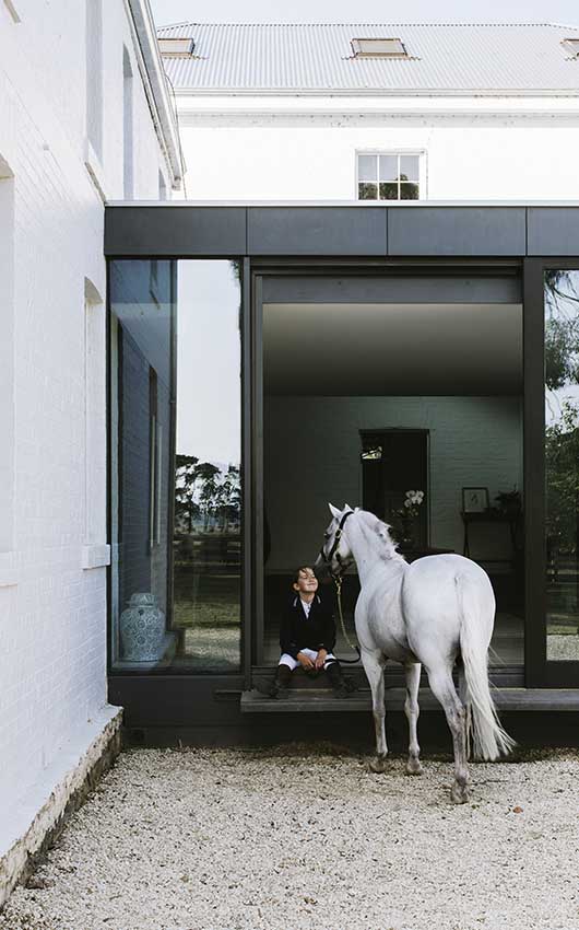 At the same time, they wanted to introduce modern amenities, while respecting the heritage of the homestead and its two out-buildings – a granary and stables which were in poor condition – which they envisioned as new accommodation for visiting business associates from interstate and overseas.