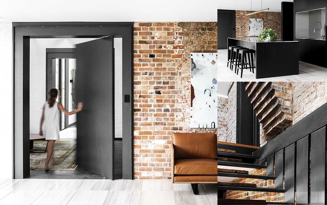From staircases to shelving: the sleek, dark steel is set against the original materiality of the building as its antithesis, its visual contrast drawing attention to the home’s character as it becomes a tangible synonym for the “new".