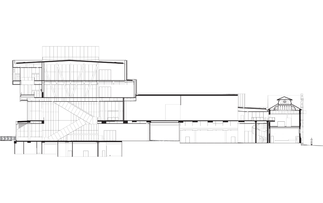 For Paul Jones, regional director at OMA, this project is a continuation of the practice's relationship with steel. "Steel has played a significant role in the work of OMA and in some ways this project continues that lineage of OMA's exploration of architectural structural expression," says Jones, pointing out that the trusses inside the building are not hidden, which makes them an important part of the architecture. "And part of the expressive nature of the architecture comes through the use of that material and that structural system," he says.