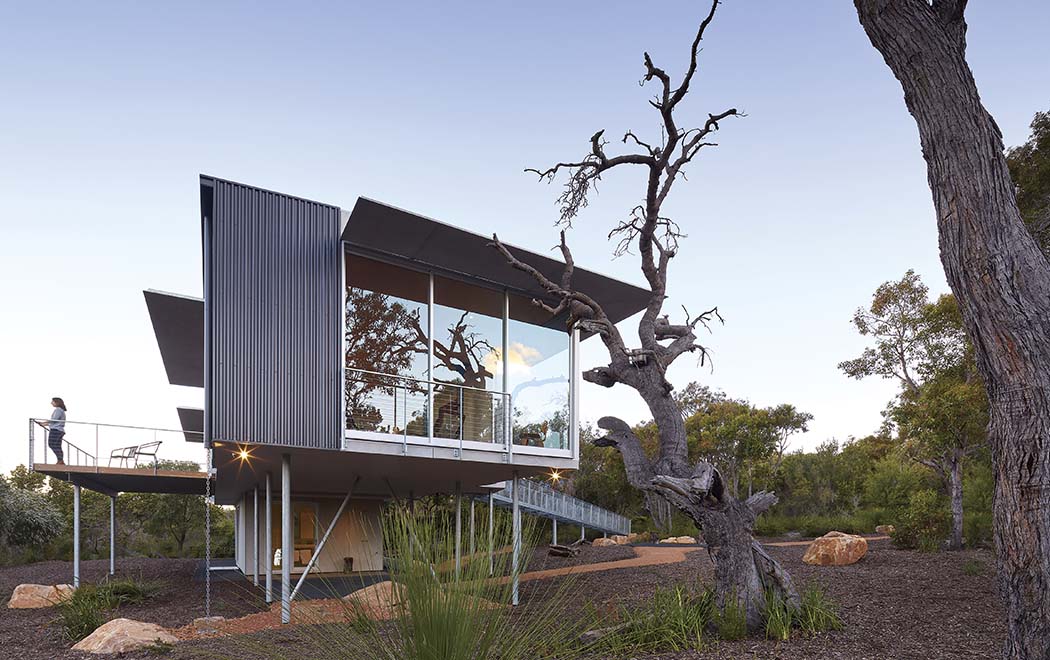 Situated halfway between Margaret River town and the surf that made the region famous, this COLORBOND® steel-clad house on stilts embodies all the best attributes of camping.