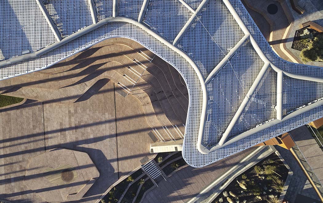 “With its deep oxidised hue signifying Western Australia’s red earth, you couldn’t get a better product for referencing the identity of the state,” says Lyons principal Paul Dash. “We worked with BlueScope specialists early on in the project who showed us samples of the original weathering steel panels used in Wood Marsh’s Australian Pavilion at Shanghai Expo 2010 and they were a beautiful chocolate colour. It has its own inherent finish that becomes richer over time and so the panels’ appearance just gets better with age,” says Dash. In the case of Yagan Square, there’s the added poignancy of the BlueScope REDCOR® weathering steel having local provenance, highlighting Western Australia’s natural resources and how integral they are to its economy.